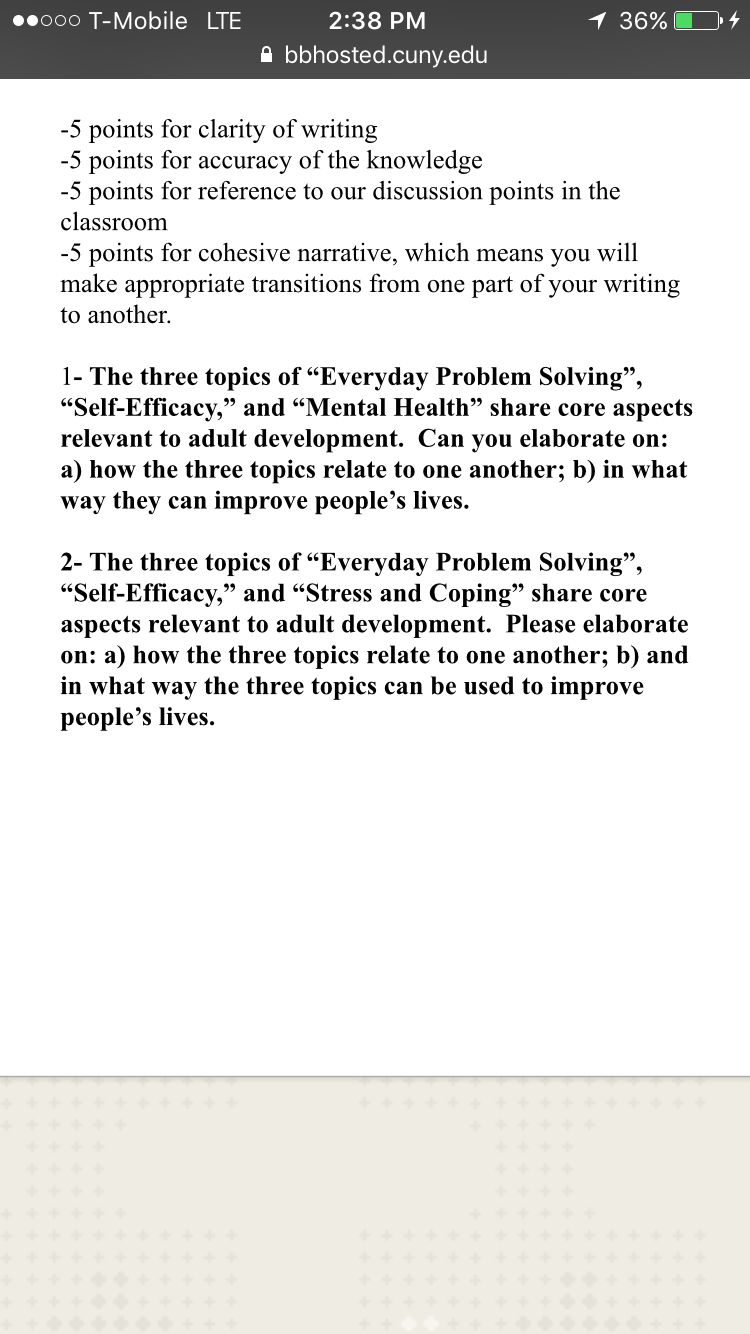 Hi! Let me know if you understand what should be fixed. First question about "mental health" are 2 lectures about mental health, Â the second about "coping and stress" Â first lecture about "coping and stress" . Â What we did was answered question two about mental health , using notes about coping and stress so not sure which question is easier for you to easier .