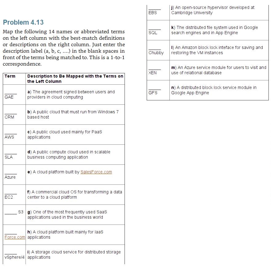 Map the following 14 names or abbreviated terms on the left column with the best-match definitions or descriptions on the right column. Just enter the description label (a, b, c, ....) in the blank spaces in front of the terms being matched to. This is a 1-to-1 correspondence.