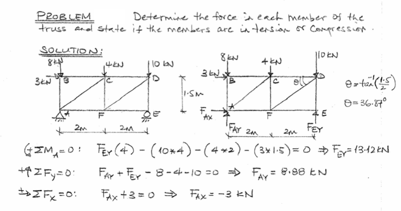 Could you please see attachment and explain the moment step in the first part of the solution. Specifically I am confused on the signs. Why does the (3 * 1.5) have a minus in front of it? What makes it negative? I understand the concept of moments, just am confused on when to you positives and when to use negatives.