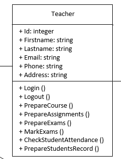 Considering only the Teacher UML Class, please look at the following question.