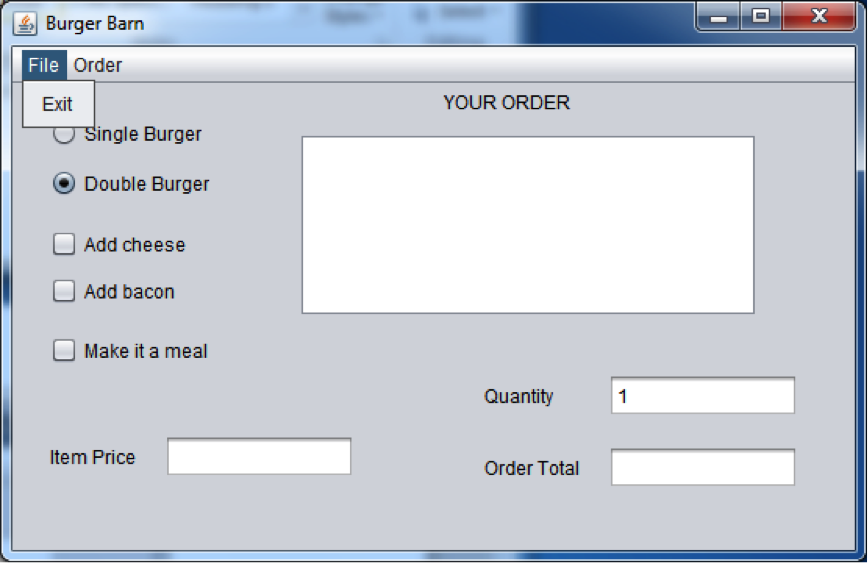 · a File menu with menu items: open, save, exit; and