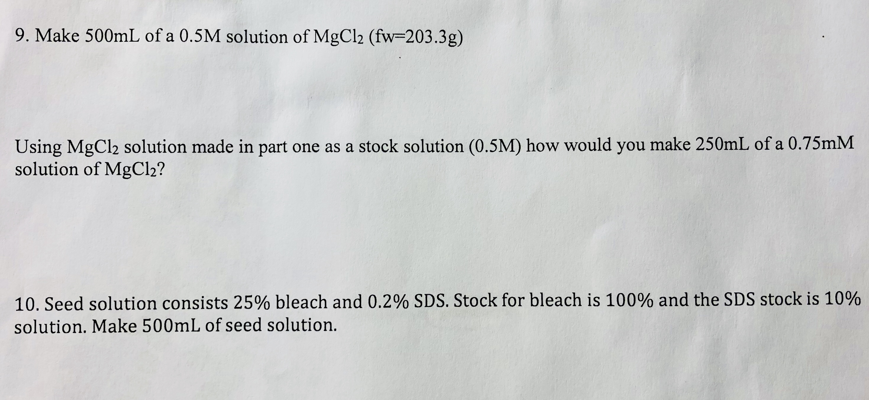 Please help answer the following molarity problems, thanks