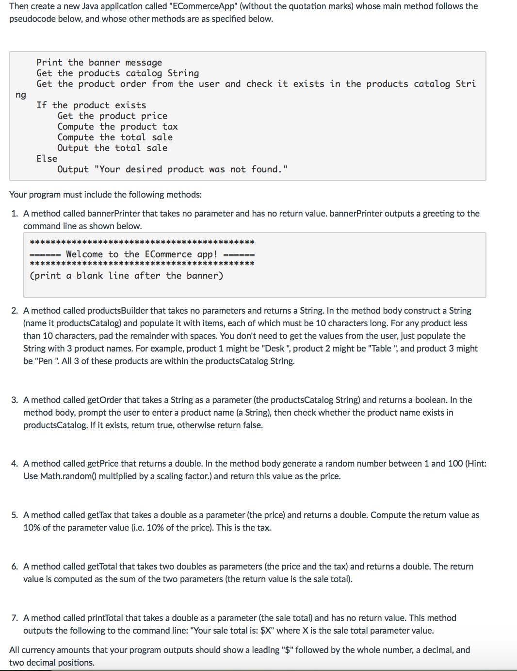 Please read the attached file below THOROUGHLY and help. This JAVA assignment allows for loops, if-else statements, and the use of multiple appropriate methods as mentioned in the file. Also, NO arrays are permitted (ONLY array parameters are allowed such as: "arrVals = something").