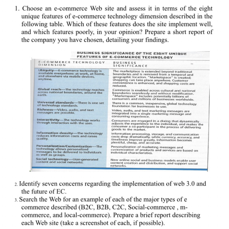 Could anyone please let me know an e-commerce web site and its assessment in terms of eight unique features of e-commerce technology dimensions. Which of the features does the site i