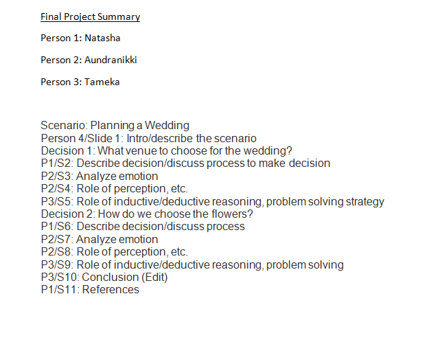 It's me again!! Â I have an assignment due tonight by midnight (MST). Â It is two slides on a power point presentation with my team. Â Although it is not much, I will not be able to complete it. Â I have attached the power point the other team members have started. Â I have also attached the summary that describes each person's responsibility; of course I am person one. Â If you could please review the presentation and make sure we have everything we are suppose to have, that would be great!!! Â Thanks in advance!!!Â