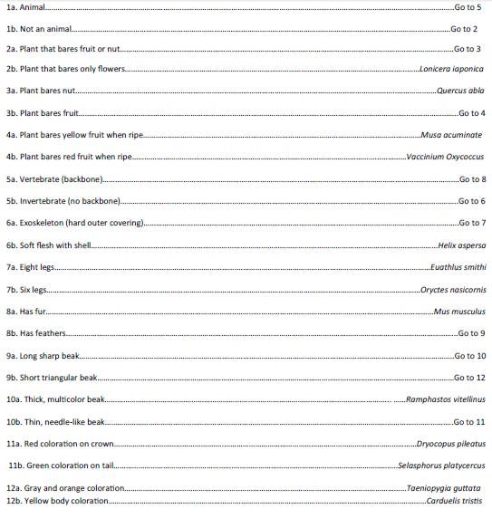 Table 3: Dichotomous Key Results Organism Binomial Name