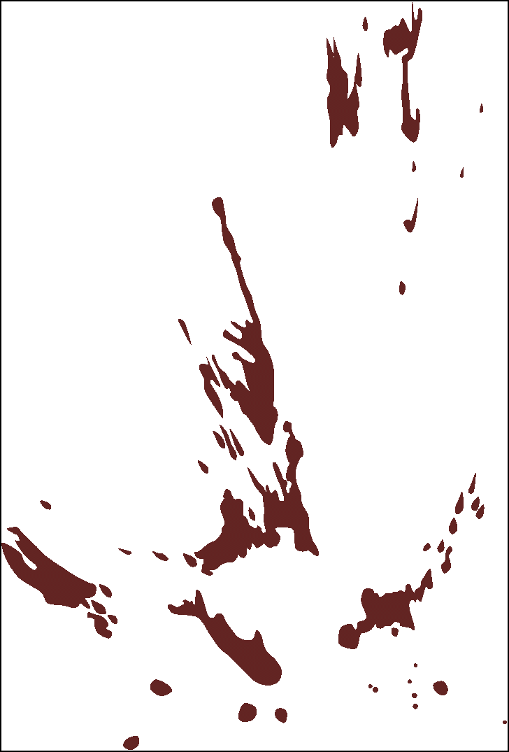 You are investigating a crime scene where a victim was stabbed multiple times while they were incapacitated on the floor next to a wall. Estimate the number of stab wounds based on the bloodstain pattern in the figure below. Explain how you determined your answer.Â