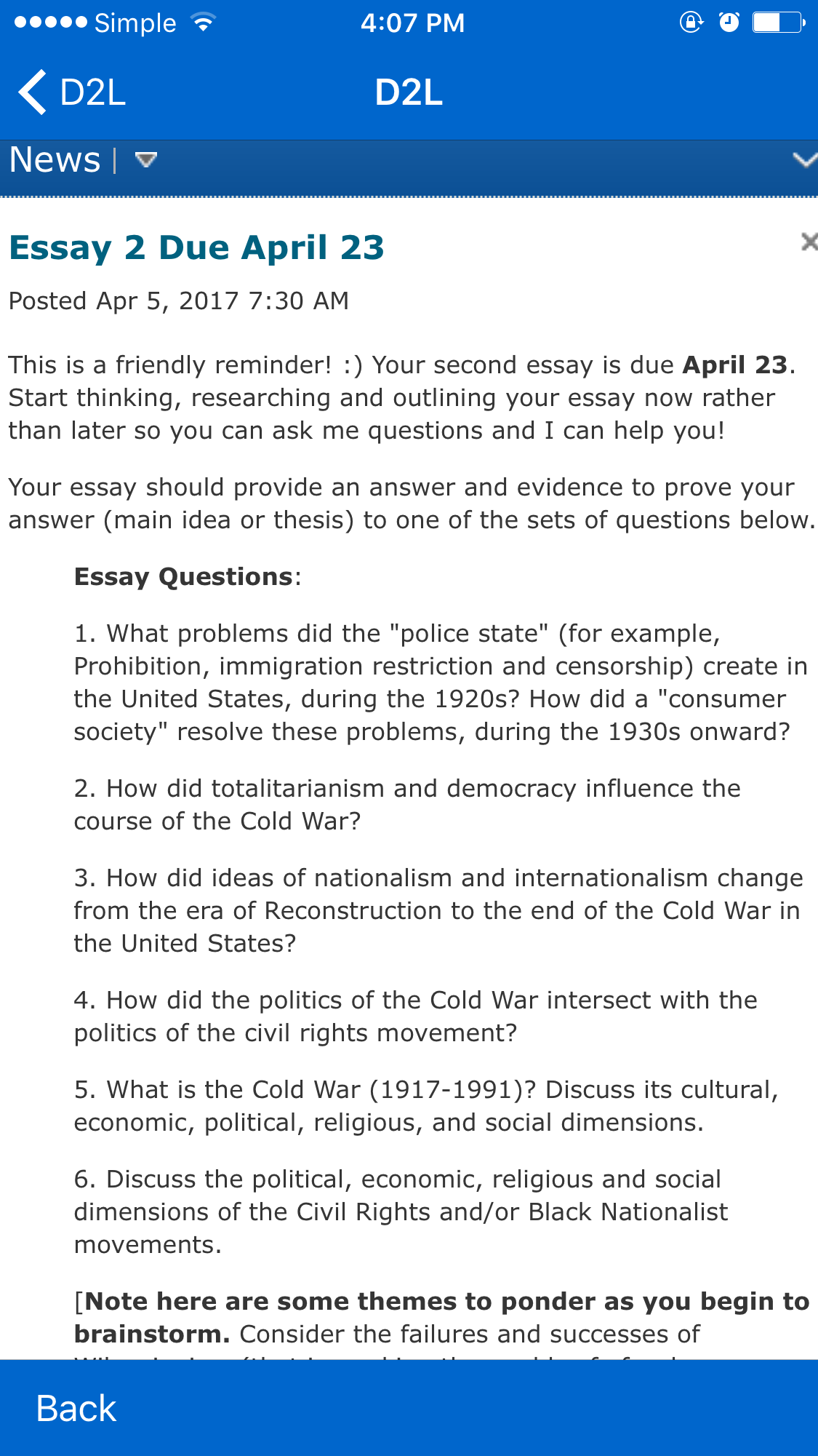00000 Simple e ( D2L News T Essay 2 Due April 23 3"