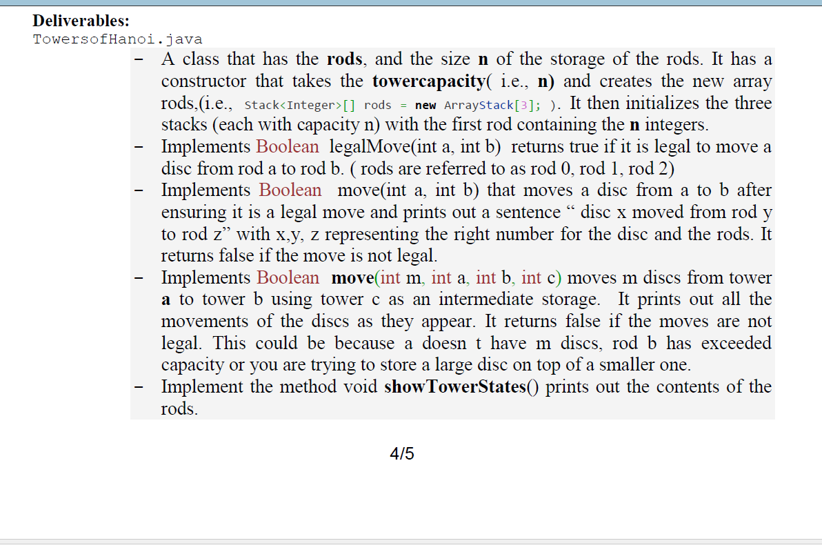 e. You must also implement public String toString() in both classes. It returns a String representation of the stack contents.