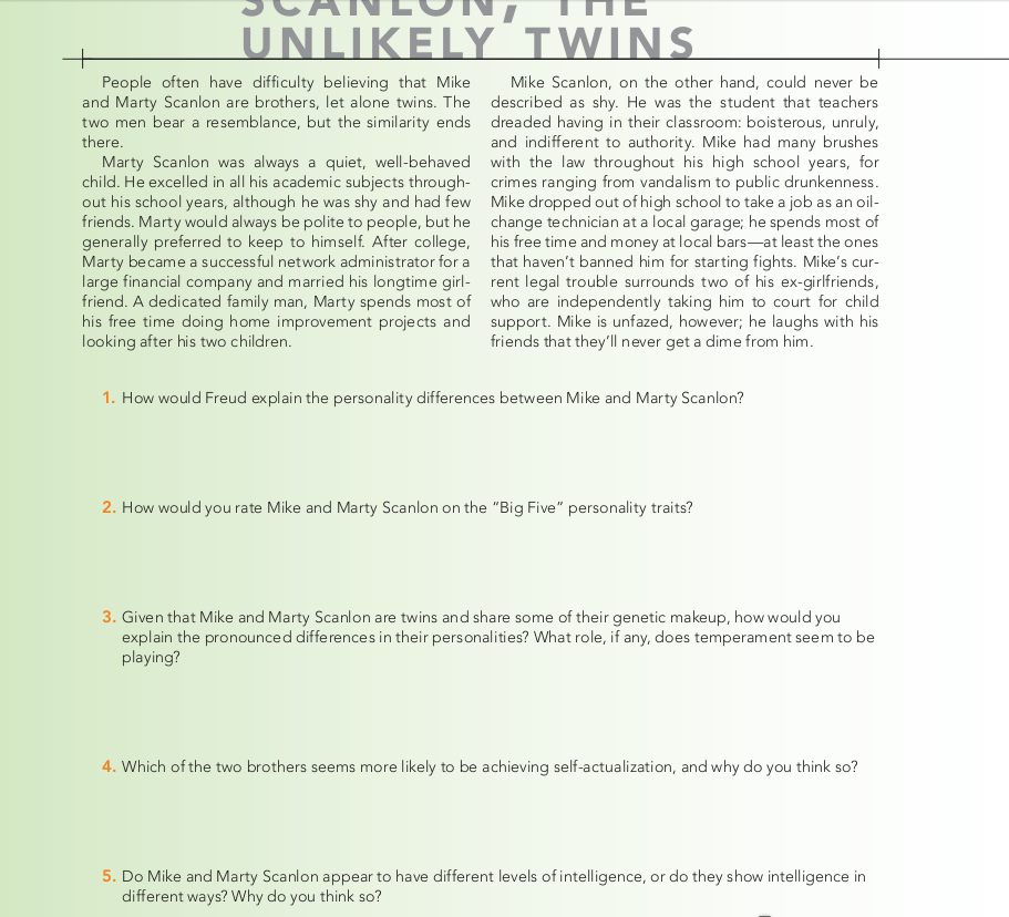 This is a review of the material we learned and is not for a grade! If you could, please read the paragraph and answer the 5 questions in both of the screen shots. Please do not look up the answers since I will have to use this to study with and do not want my review material to be plagarized.