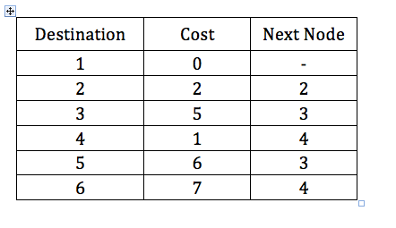 The following table is used in distance vector routing algorithm (the cost may be asymmetric). Node 1’s routing table before update is