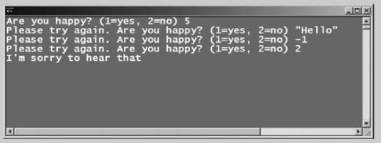Please Try Again. Write a program that asks the user to respond to a question by entering either 1 for yes or 2 for no. Use a While loop to continue prompting the user until a valid response is entered. Upon entering a valid response, the program should display an appropriate message to the user.