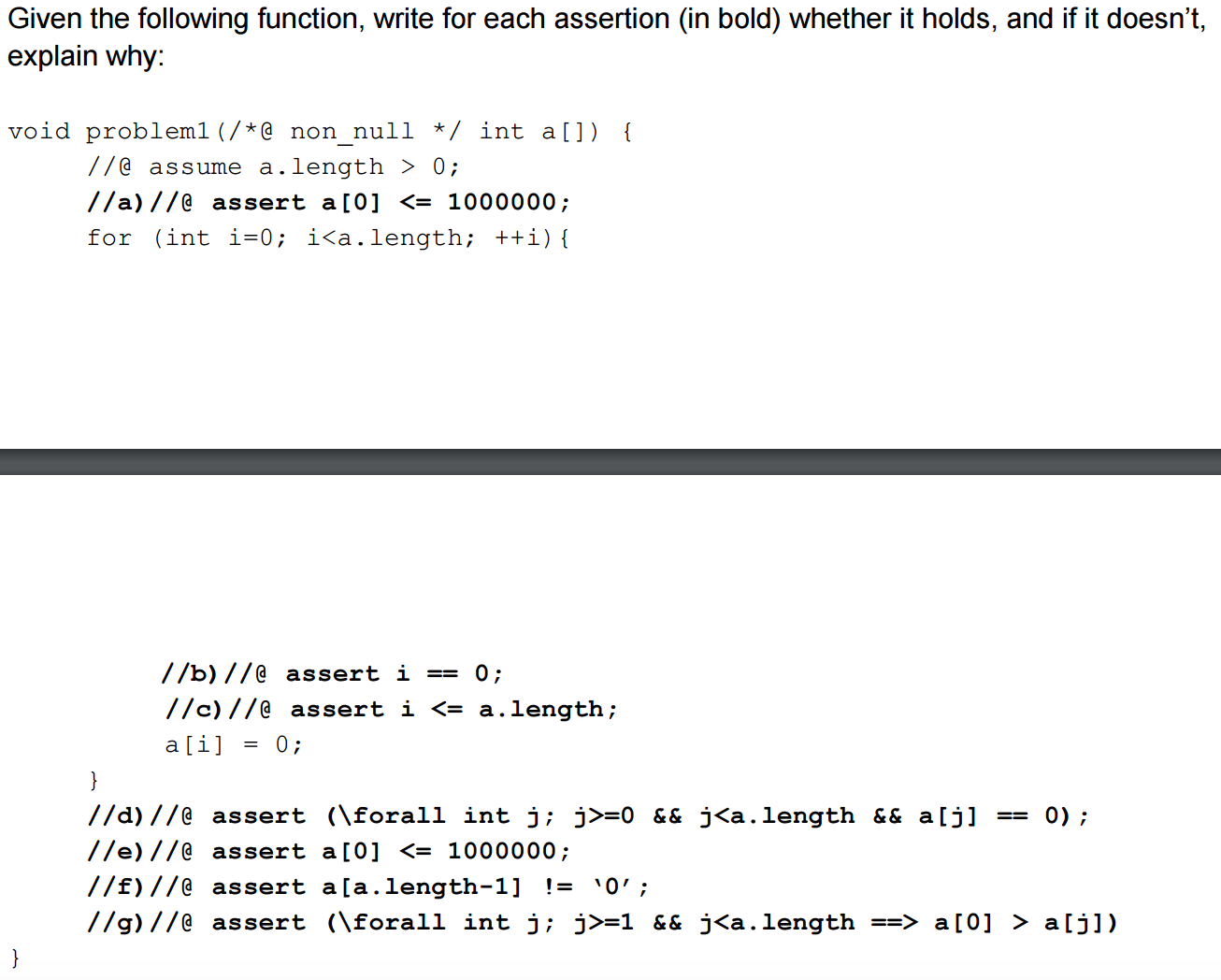 These questions are about JML assertions. Please help me answer these questions. Questions are on attached file. Thank you!