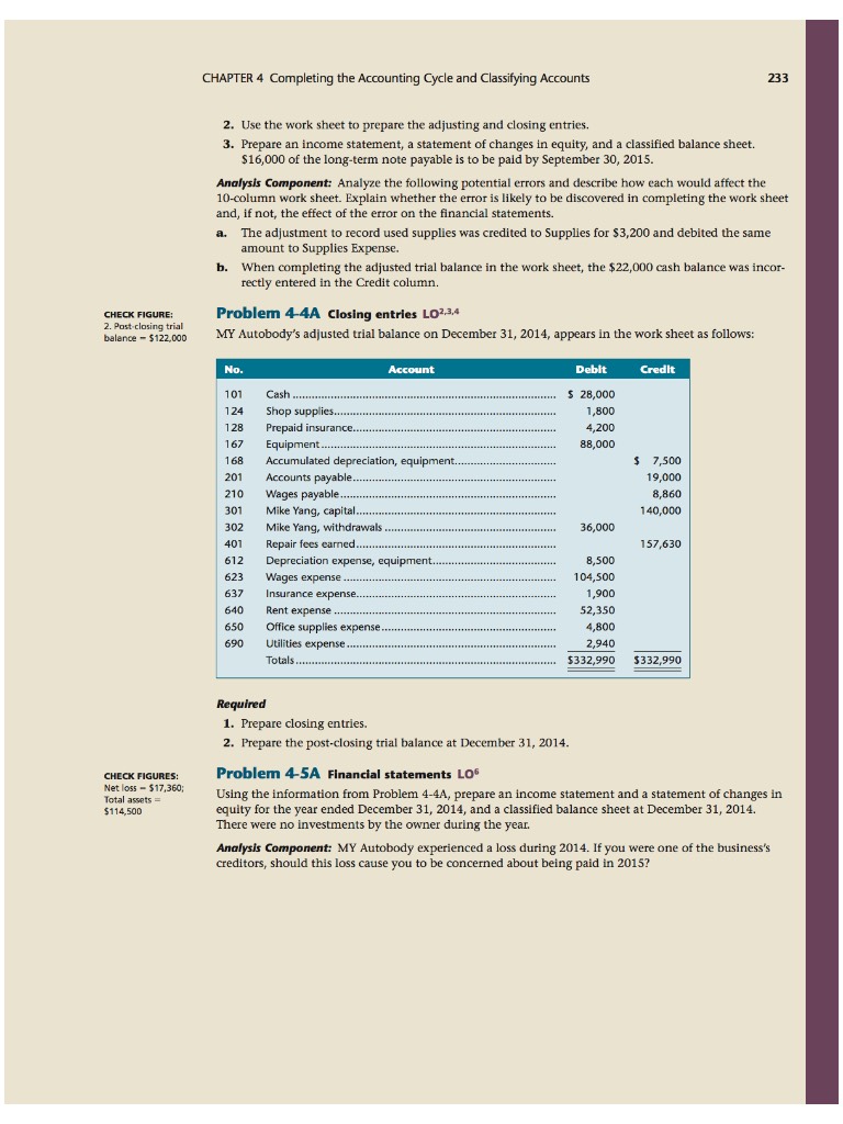MY Autobody's adjusted trial balance for December 31, 2014 appears in the attached worksheet.