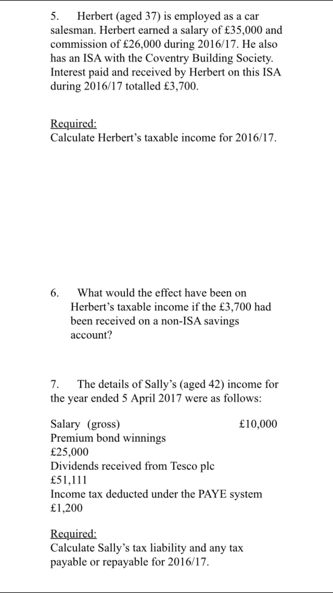 Can you please answer qustion1-7. These questions are related to tax.
