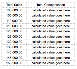 Sample Table: Assuming a total annual sales of $100,000, the table would be aligned similarly to this: