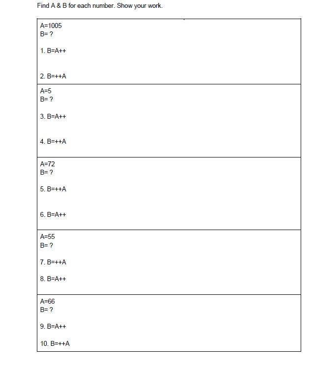 Find A&B for each number . show the work .