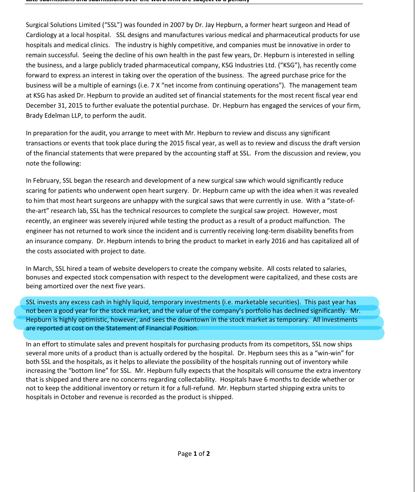 This is a case study question. I need someone help me analyze two paragraphs which I highlighted. Analysis should be related to the accounting issues and solutions. I have also attached the case analysis framework which is useful to solve it. It should be around 500 words.