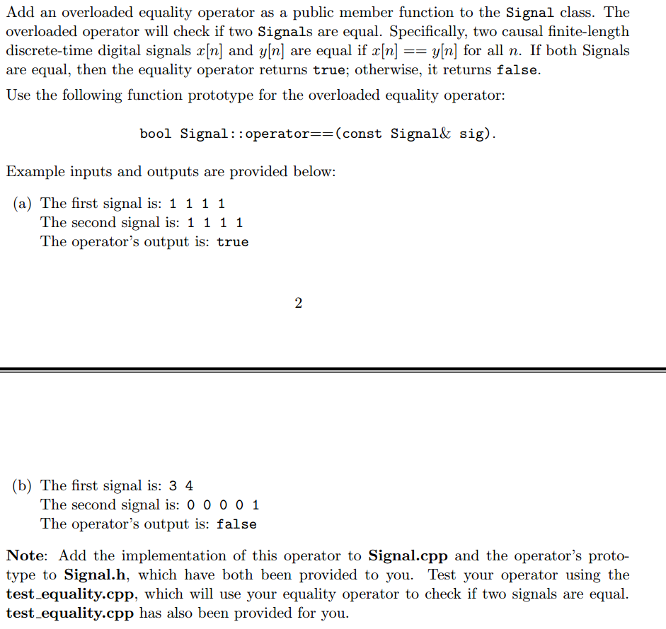 this is a c++ question the question is below, the file is provided, just need to add a operator.