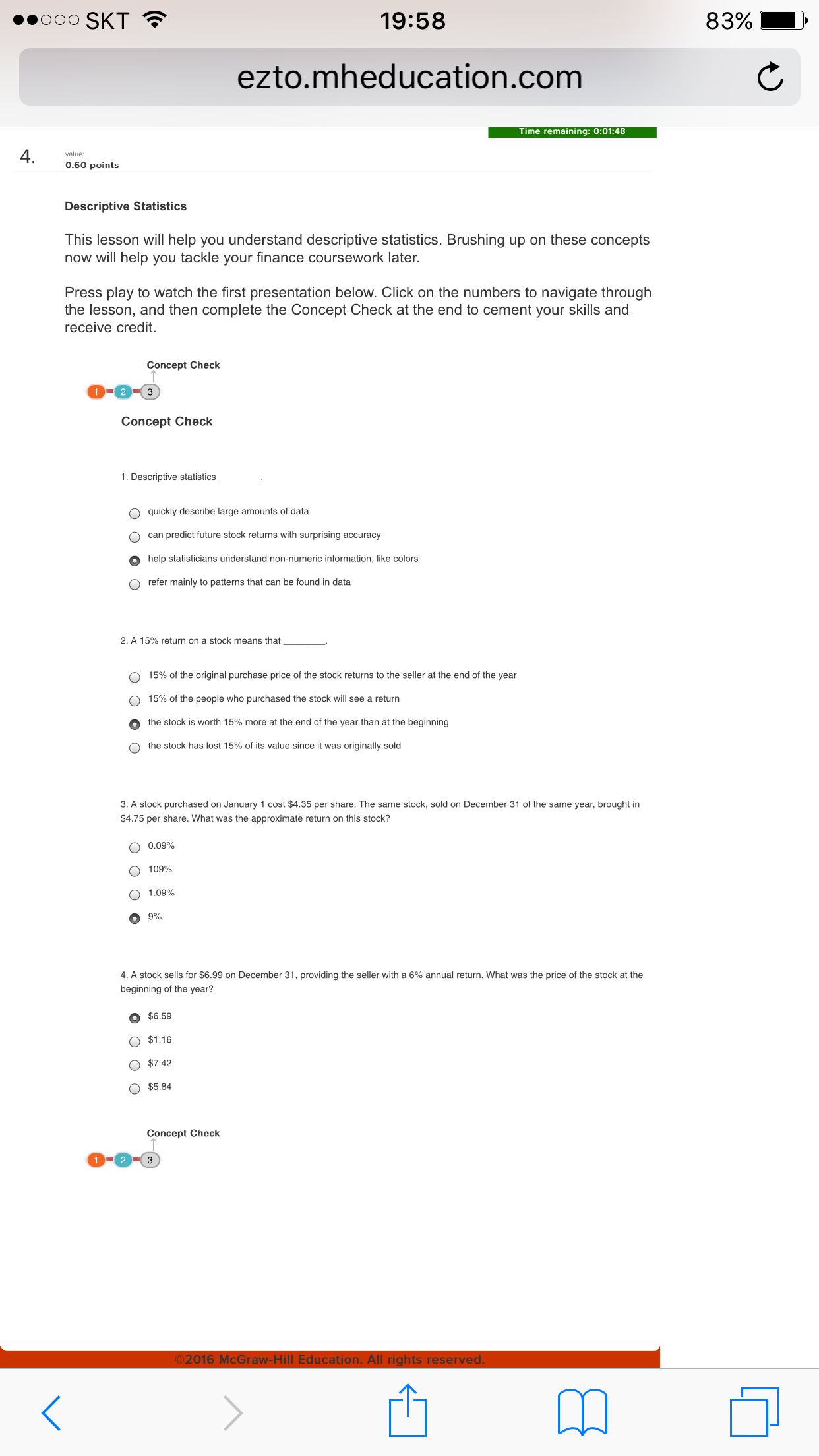 Hi! Can You help me with this test formatted questions. I answered them, but I think they are wrong!