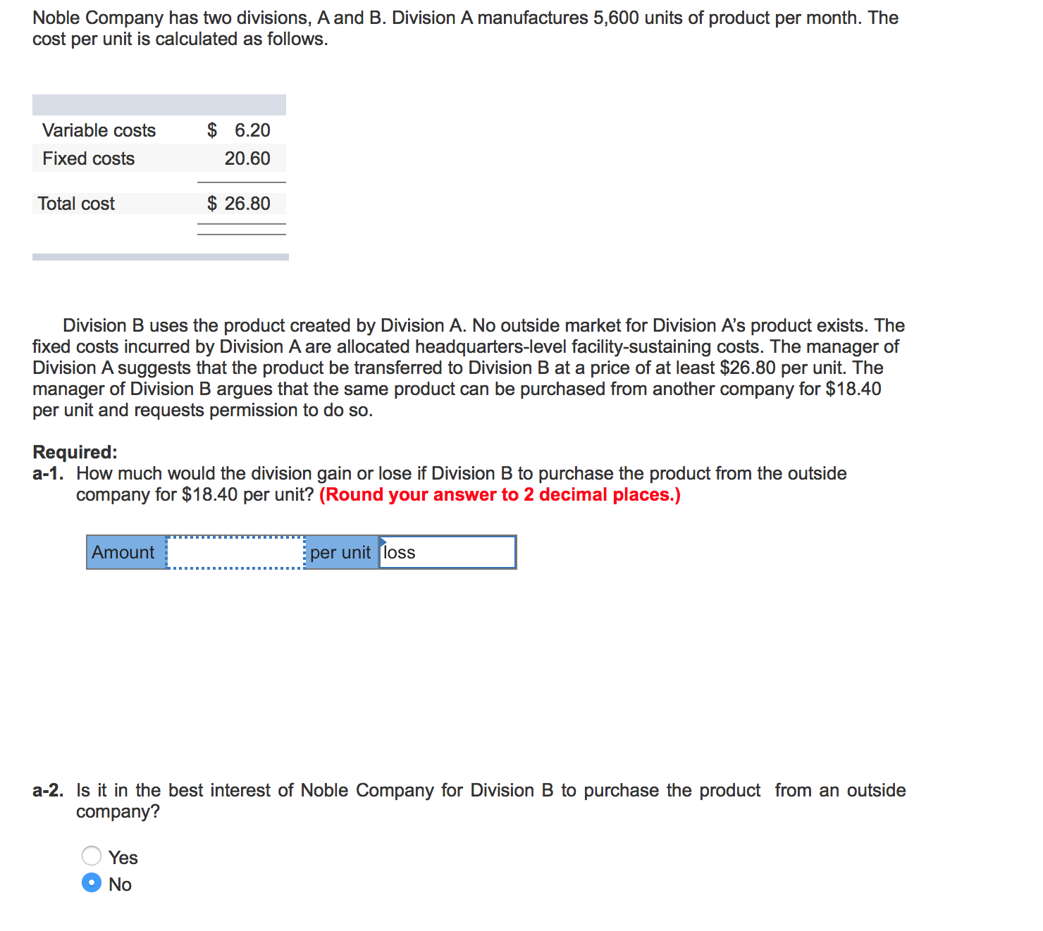 The answer is not $47,040 (26.80-18.40 x 5600). Any help would be greatly appreciated! Thank you in advance!