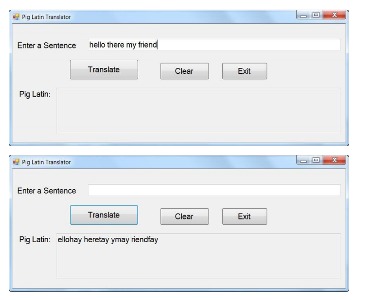 Create a form that allows a user to enter a sentence. That sentence is then translated to Pig Latin.