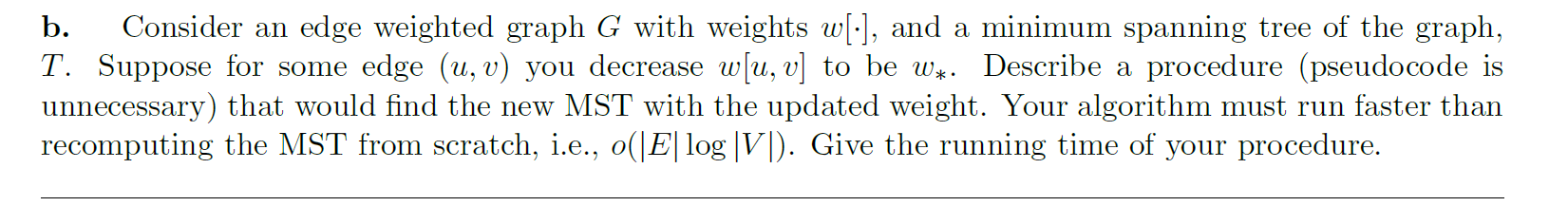 unnecessary) that would nd the new MST with the updated weight. Your algorithm must run faster than