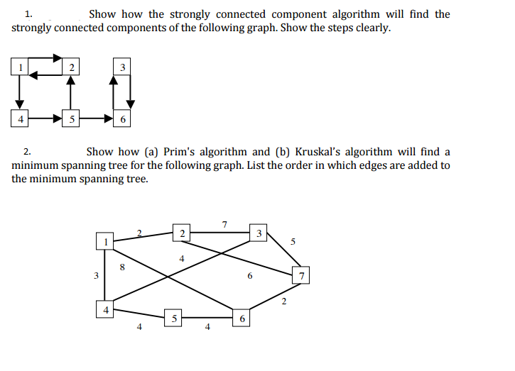 2 Questions about strongIy connected component and Prim&KruskaI aIgorithms.