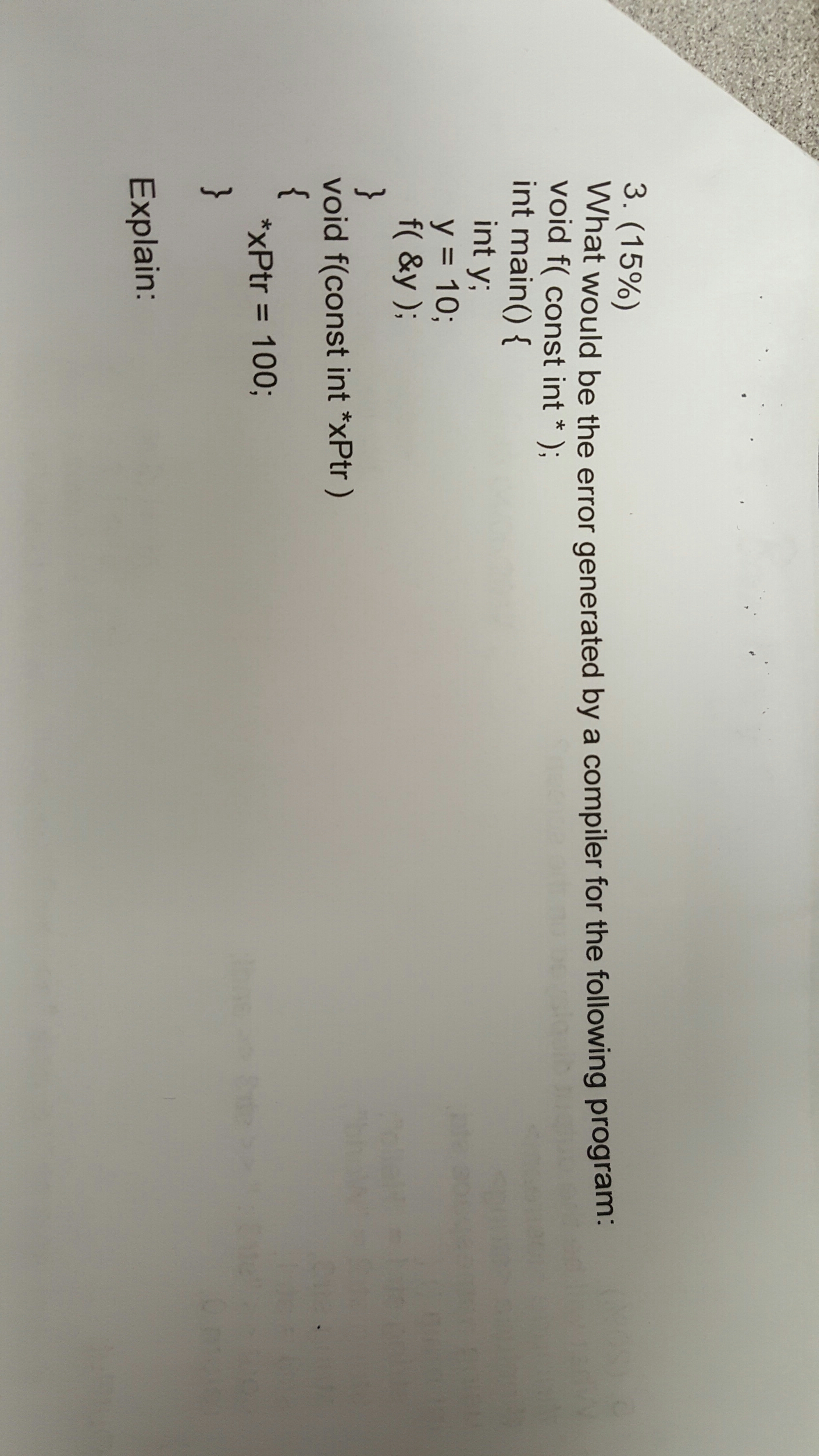 what would be the error generated by a compiler. question in pic below