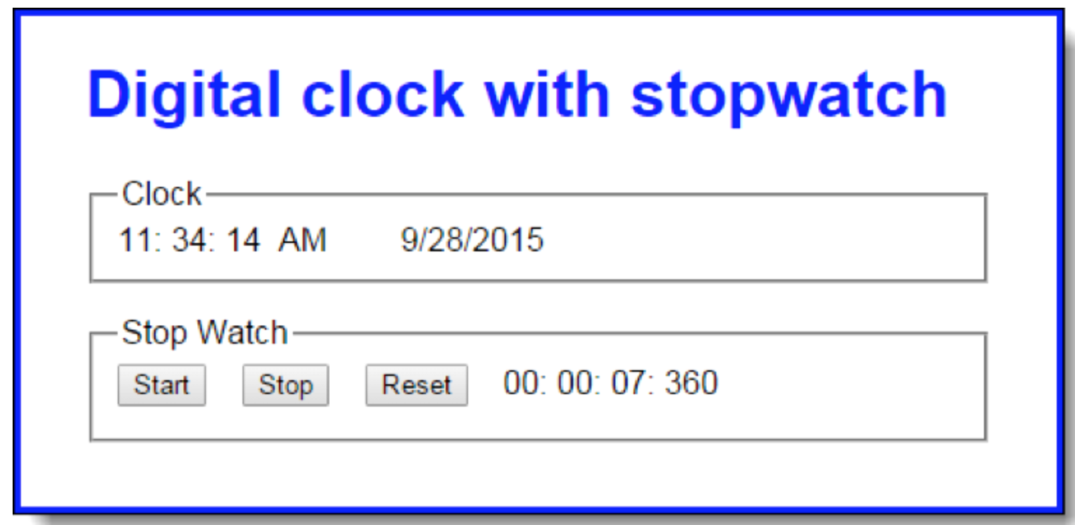 Notice that there’s a new library file named library_stopwatch_augment.js. In the HTML file, note that the script tag for this new library comes after the script tag for the stopwatch library. Also note that there’s a new span tag for the hours value of the stopwatch with a default value of “00”.