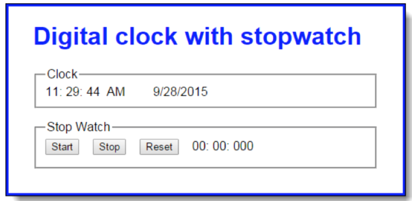 Notice that there are two more library files, a namespace library and a utility library. In the HTML file, note that the script tags for these libraries come before the script tags for the clock and stopwatch libraries.