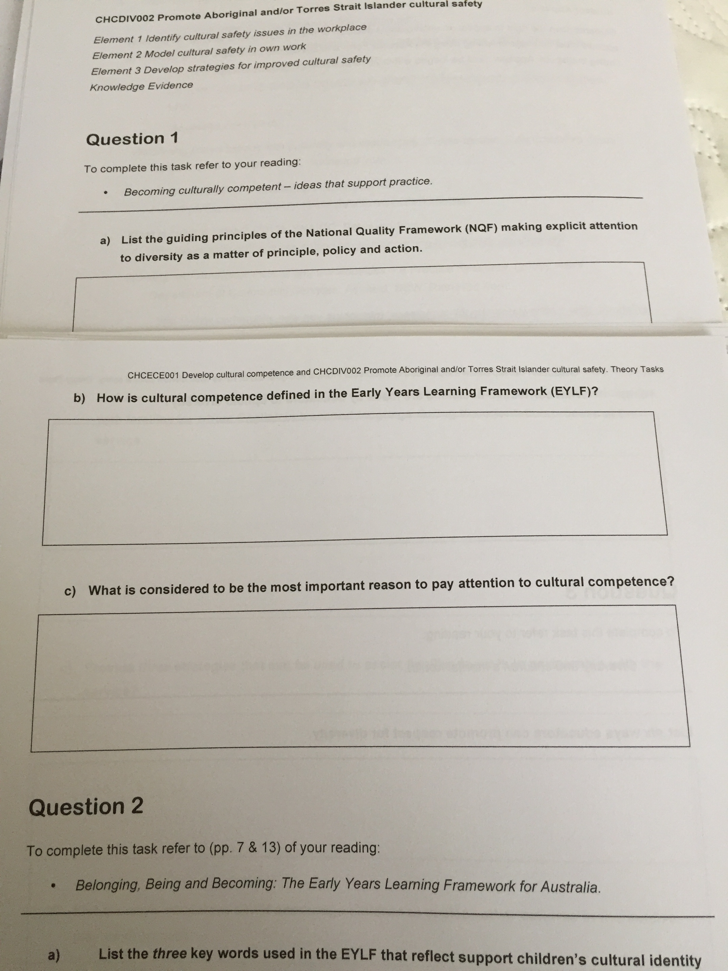A) list the guiding principles of the national quality framework (NQF) making explicit attention to diversity as a matter of principle policy and action B) how is cultural competence defined in the early years fr