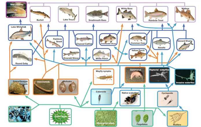 2) how does energy travel through this food web? what happens to the amount of energy as it moves through the trophic levels?