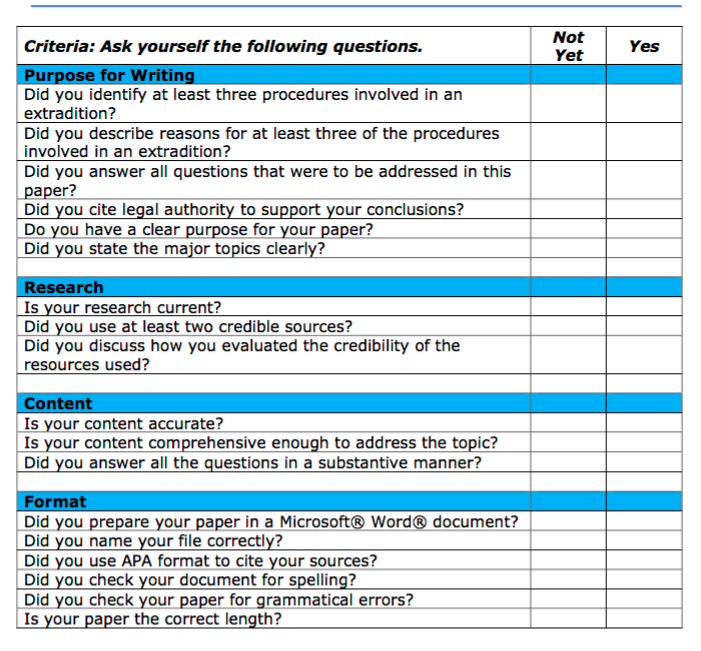 *Attached is the assignment checklist