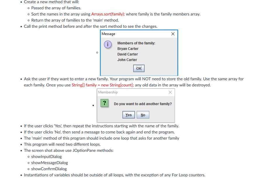 I have a difficult Java coding project coming up and want to be able to compare my work to a correct version of the project. I've attached three images of the project instructions (coding for the first part of the project, then instructions for the remainder). We cannot use global variables.