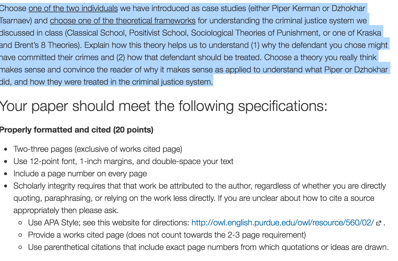 Must be 2 pages and double spaced. APA format if possible.Use Tsarnaev and please use classical school. (You can pick any topic as long you present a strong topic). I am aware that  readings were not provided. You can still generate an argument if you know the theoretical frameworks.