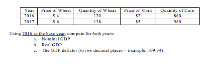 Assume a country produces only two goods: wheat and corn. Below are data for that country over a two year period.