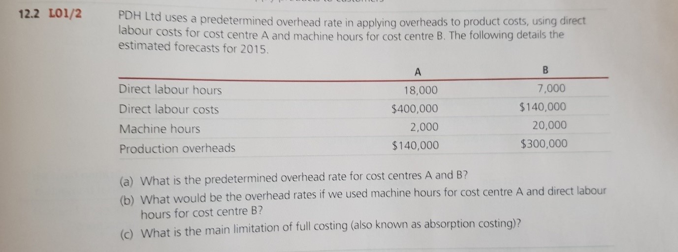 b) What would be the overhead rates if we used machine hours for cost centre A and direct labour hours for cost centre B?