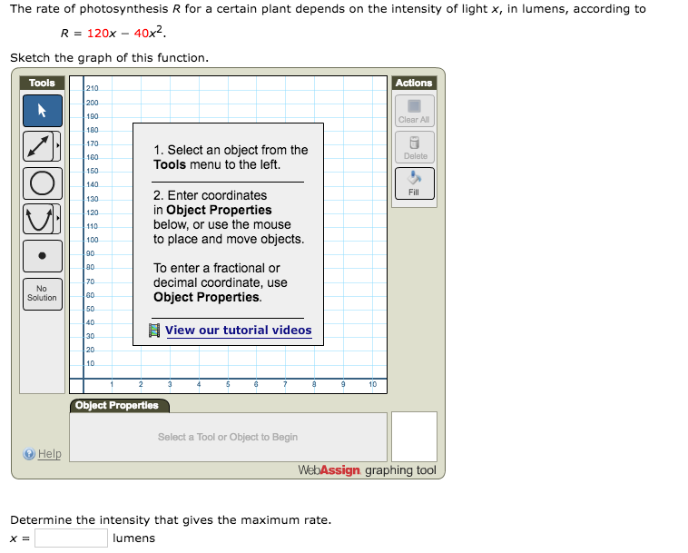 The rate of photosynthesis R for a certain plant depends on the intensity of light x, in lumens, according to