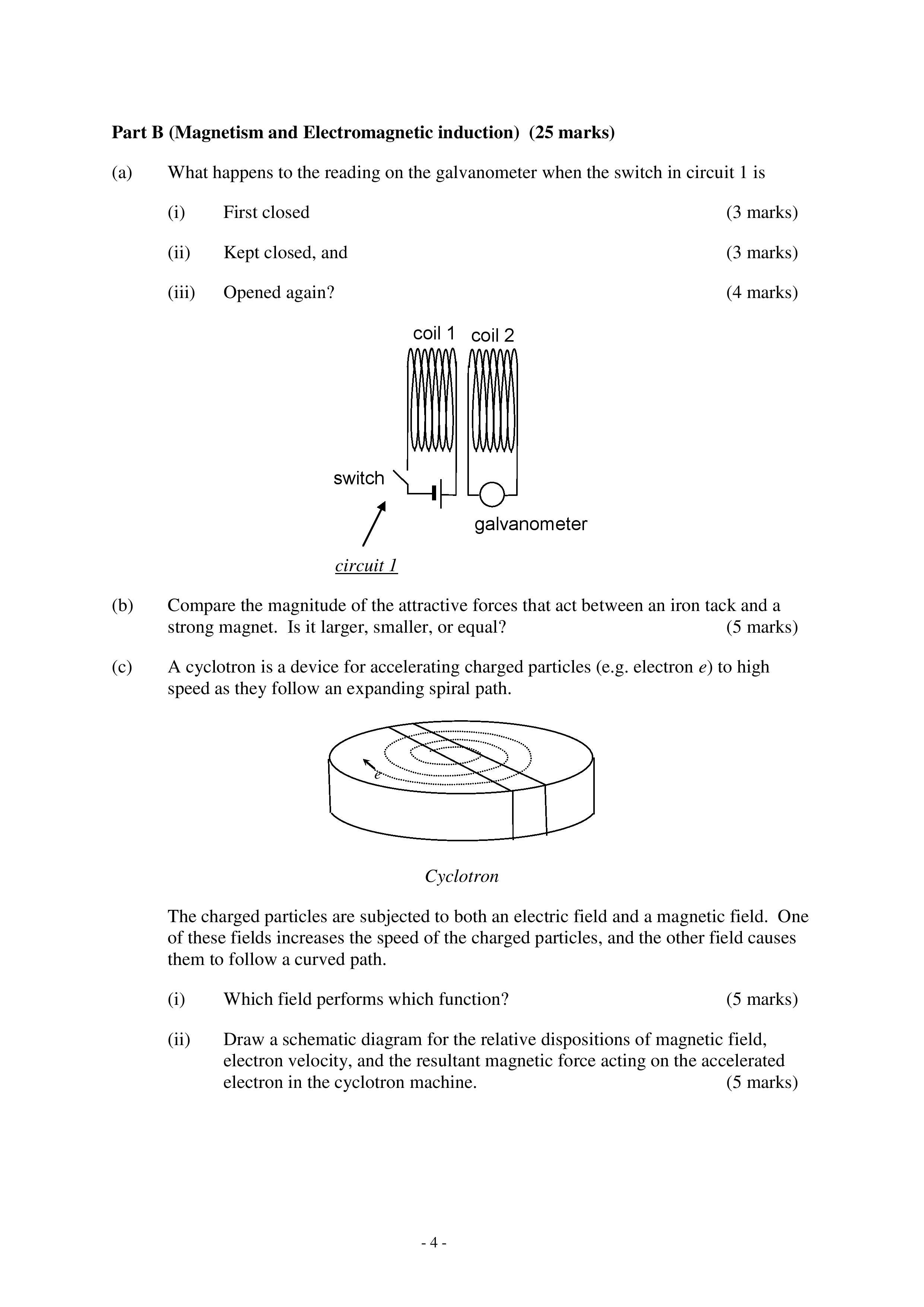 strong magnet. Is it larger, smaller, or equal? (5 marks) (c) A cyclotron is a device for accelerating charged particles (e. g. electron e) to high