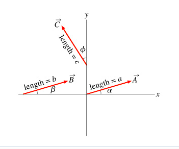 C.)Find the components of the vector C⃗ with length c= 1.00 and angle ϕ=35.0∘ as shown in (Figure 1)Â