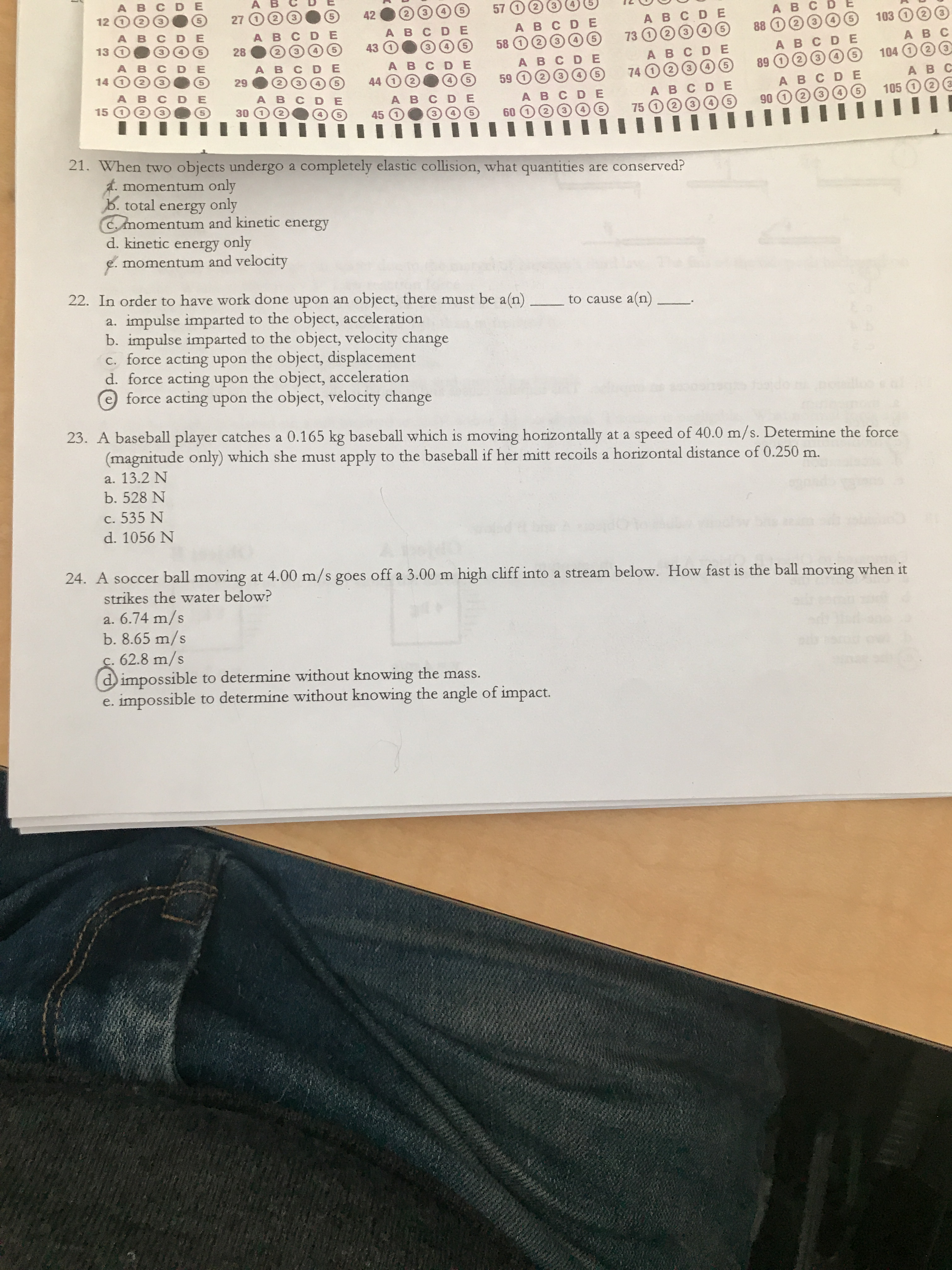 [if momentum and velocity 22. In order to have work done upon an object, there must be a(n) __ to cause a(n) _.