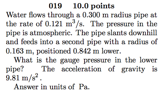 0.163 m, positioned 0.842 m lower. What is the gauge pressure in the lower