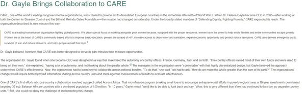 Read ”Dr. Gayle Brings Collaboration to CARE” (ATTACHED BELOW)