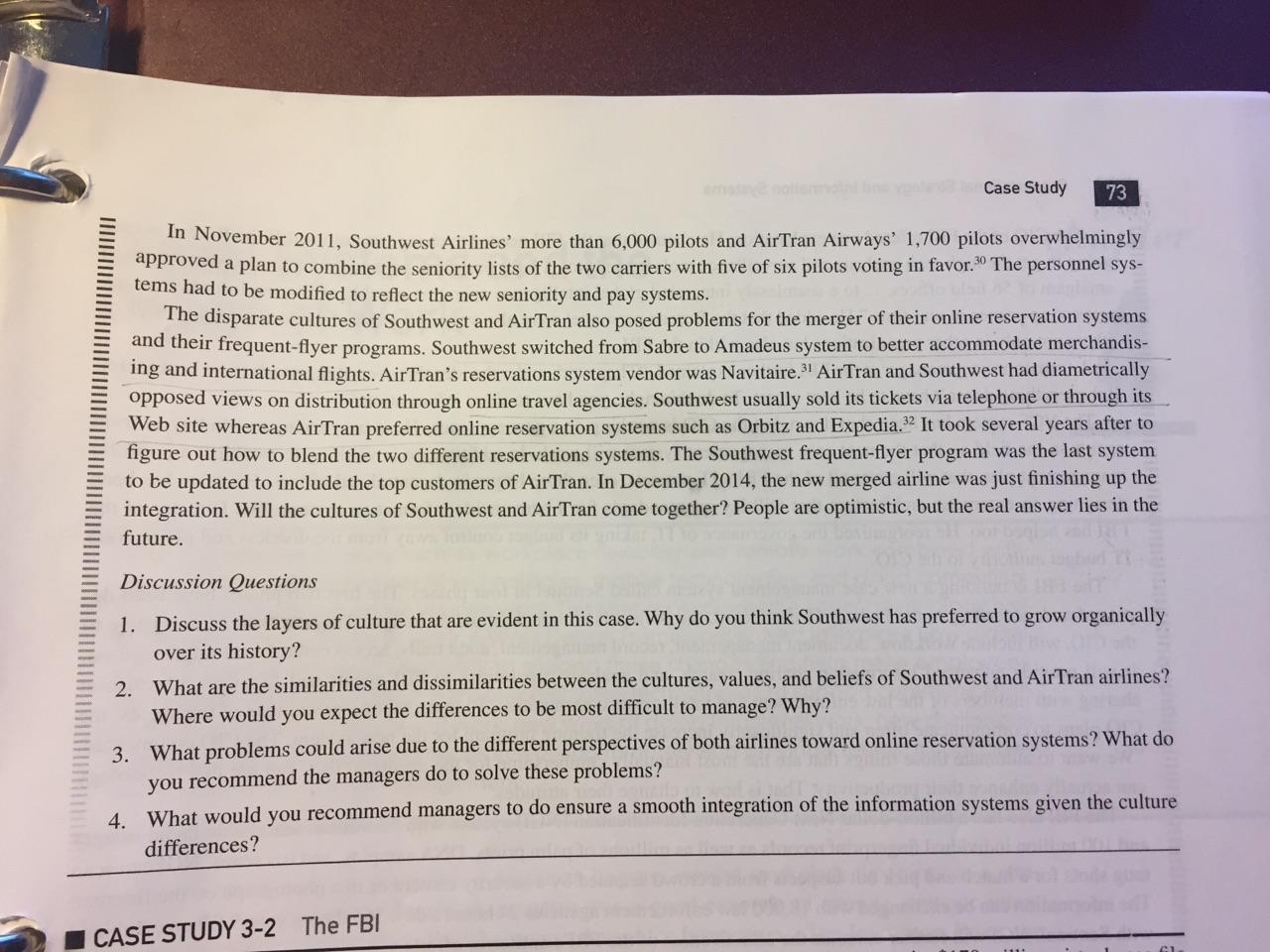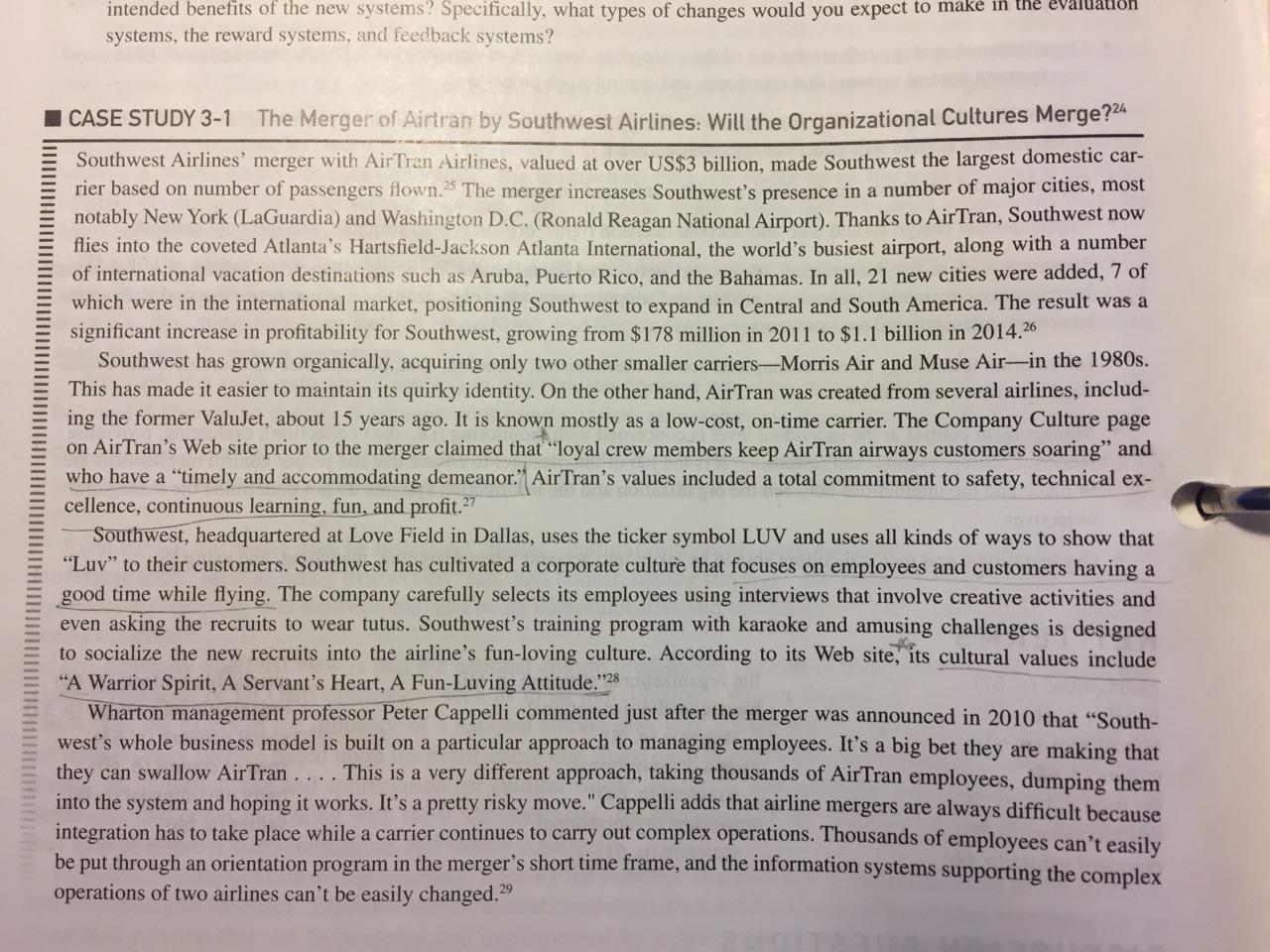 SOUTHWEST CASE STUDY MERGER DUE 5/23 AT 5:00PM