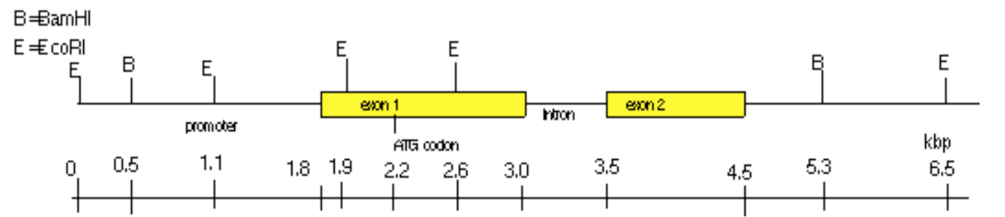 You are studying gene Q in yeast, which is an eukaryote but normally grows as a haploid. Protein Q is 50 kDa. The restriction map of the wild-type allele of this gene is shown below: