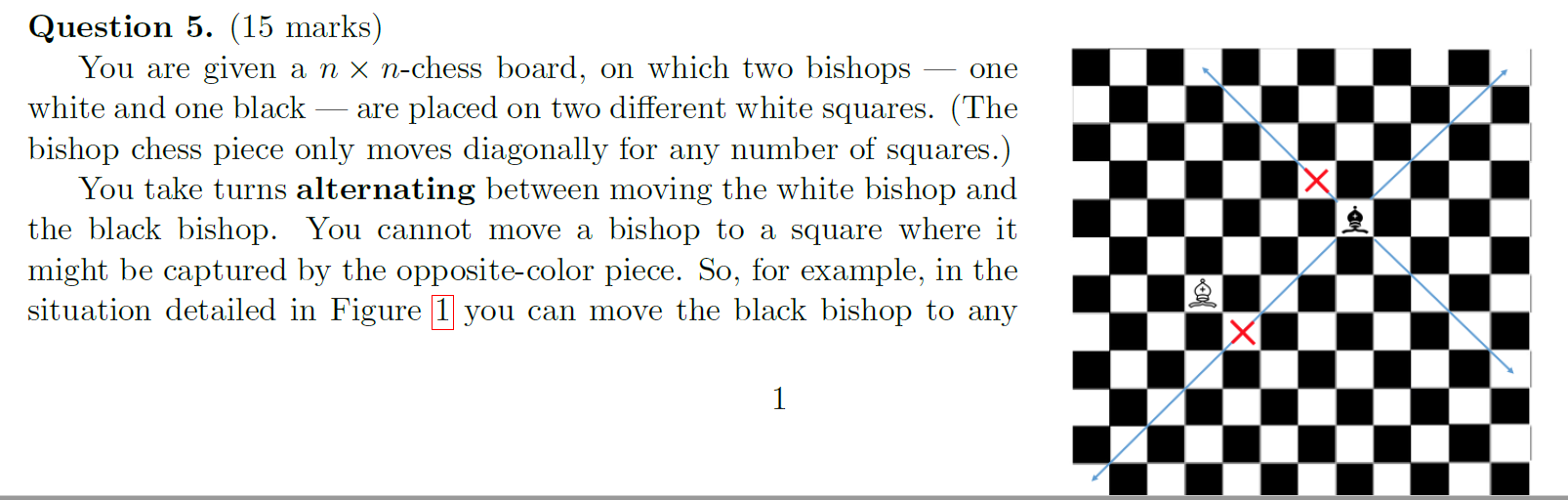 Question 5. (15 marks) You are given a n X n—chess board, on which two bishops 7 one
