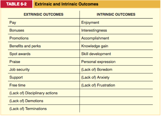 Which of the outcomes in Table below (check the uploaded file) are most appealing to you? Are you more attracted to extrinsic outcomes or intrinsic outcomes? Do you think that your preferences will change as you get older?