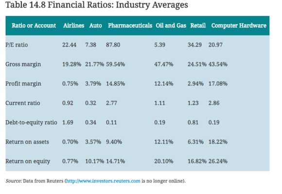Analyze table 14.8 in Financial Management: Core Concepts, Ch. 14: "Financial Ratios: Industry Averages."