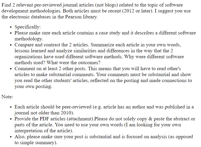 development methodologies. Both articles must be recent (20:12 or later). I suggest you use